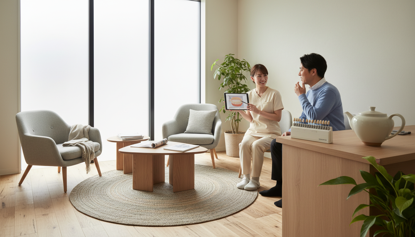 経験豊富な歯科医師が、丁寧なカウンセリングを通じて、あなたに最適な施術方法をご提案します。シェードガイドを使った詳細な色の確認、段階的なアプローチによる白さの調整、そして施術後のアフターケアまで、トータルでサポートいたします。
